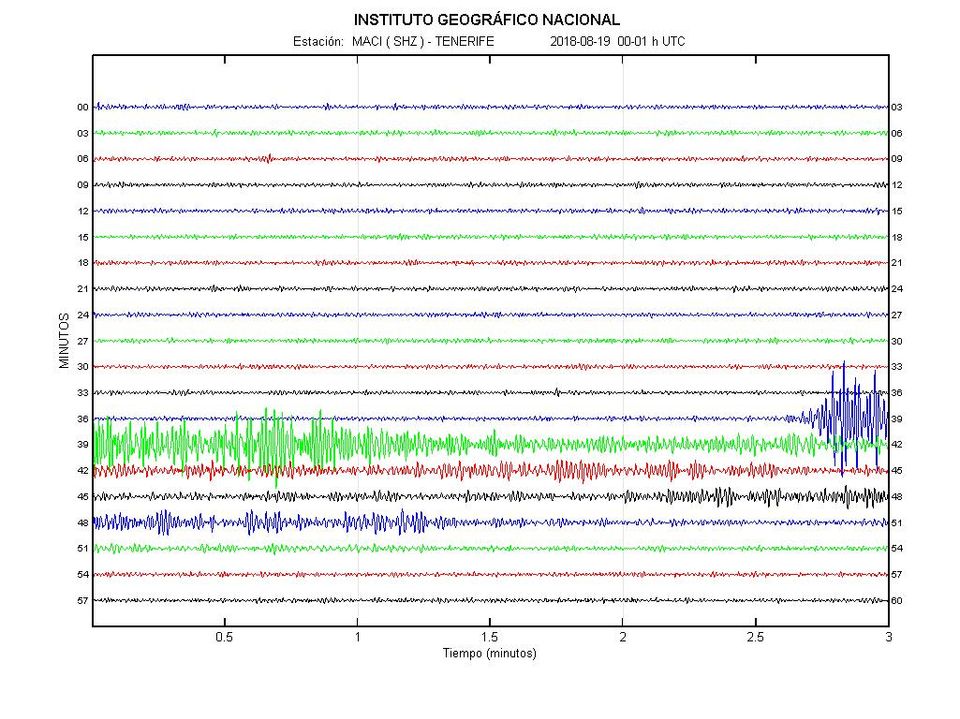 Esta madrugada del domingo 19 de agosto a las 01:38h hora local canaria y durante casi 11 minutos se ha detectado otro evento de gran amplitud y de largo período en Tenerife por la estación MACI del IGN situada en las proximidades de las cañadas del Teide, este evento se une a los detectados ayer y puede ser precusor de una erupción volcánica.